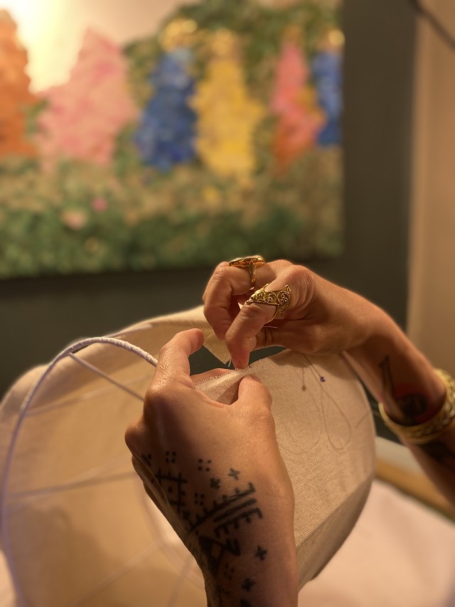 Créer un luminaire, c’est prolonger le dialogue déjà engagé avec les matières. Observer comment elles filtrent, diffusent ou absorbent la lumière. Comprendre comment un geste, une couture, une structure influencent l’atmosphère d’un lieu. À l’atelier, chaque pièce lumineuse est pensée comme un équilibre entre fonction, émotion et discrétion.